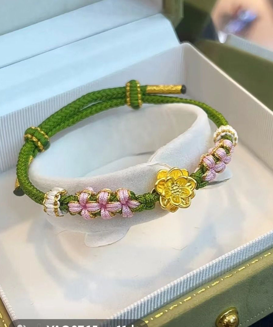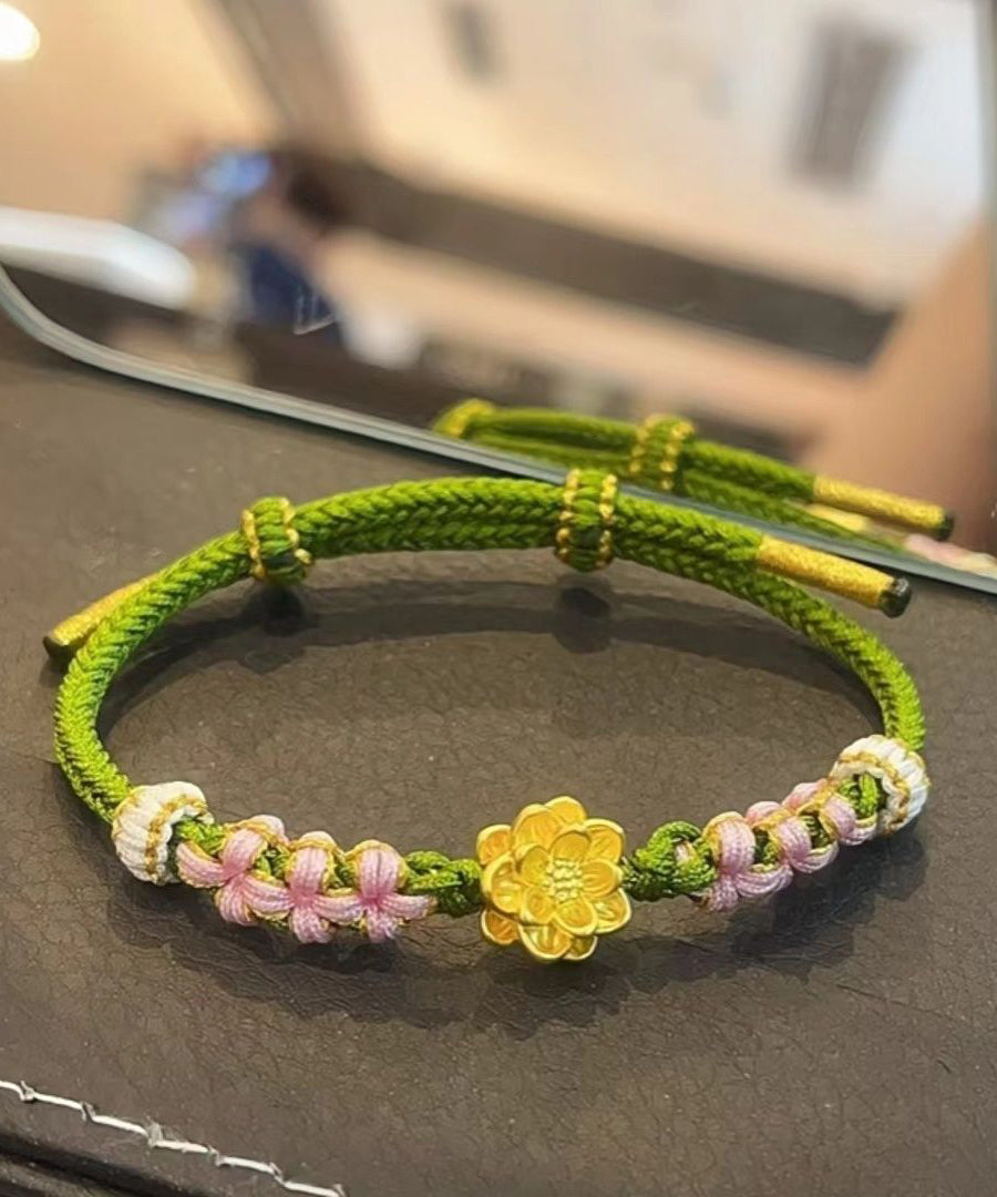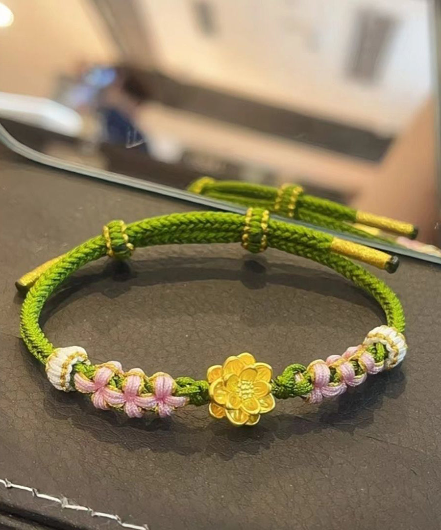 Beautiful Green Handmade Weaving Peach Blossom Lotus Charm Bracelet