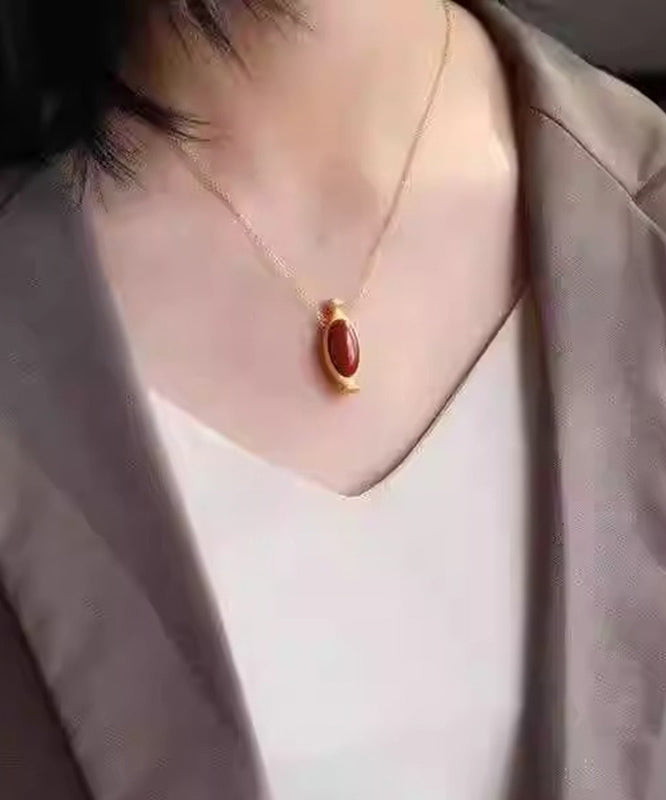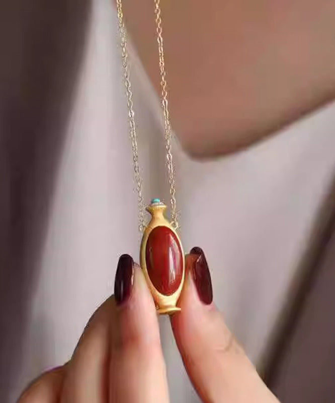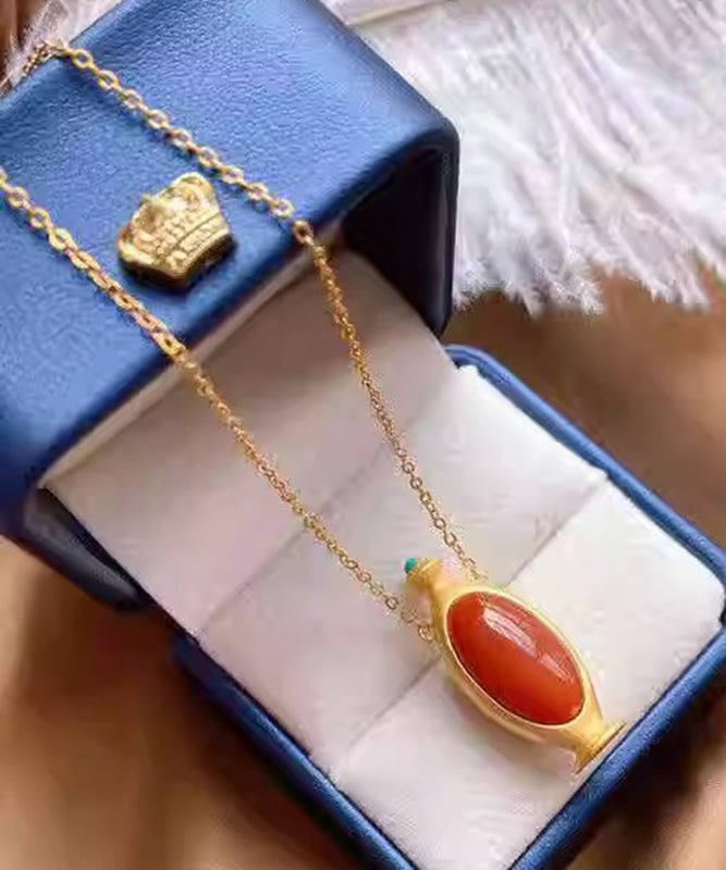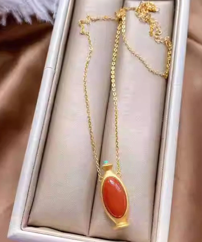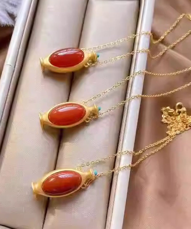 Beautiful Red Sterling Silver Overgild Agate Pendant Necklace
