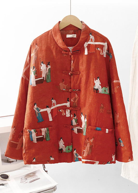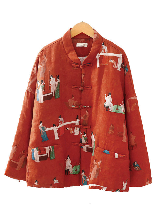Chic Orange Print Pockets Fine Cotton Filled Oriental Coats Winter Fabric: Cotton Filled Size & Fit: Fit: This garment fits true to size. Length: Size L measures 24.57"from shoulder to hem Bust: Great for any cup size. Waist: Loose Fit. Comfortable room throughout midsection. Hip: Loose Fit - room for hips. Hand Wash Cold.