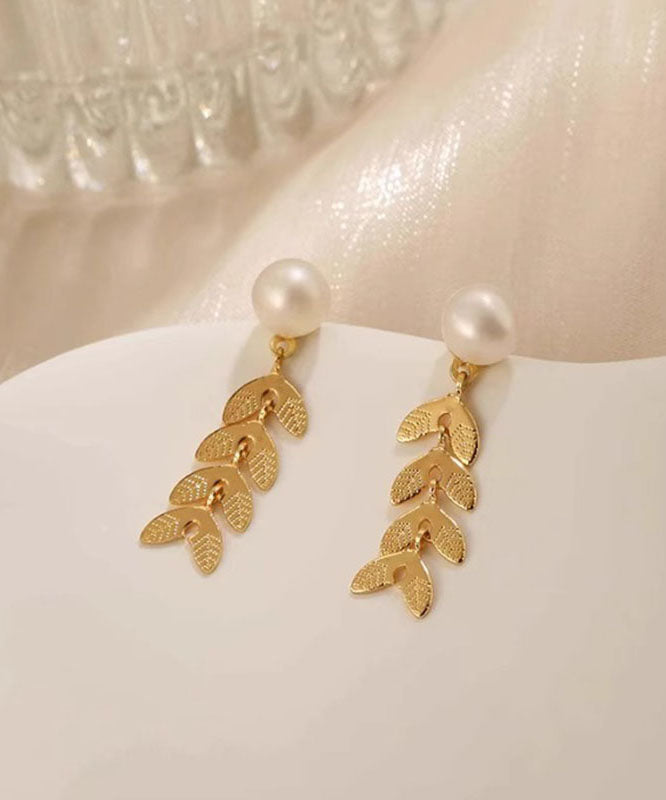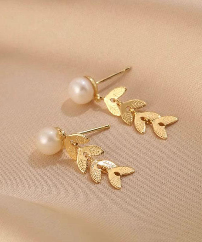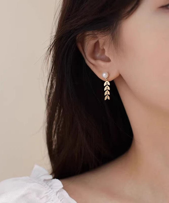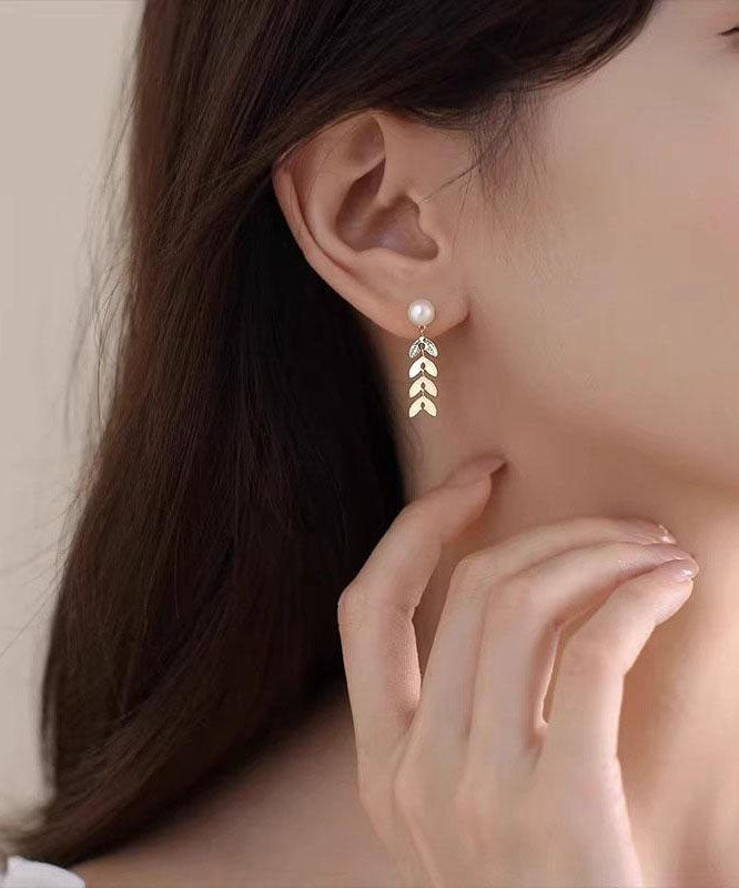 Fashion Gold Sterling Silver Overgild Pearl Ear Of Wheat Stud Earrings