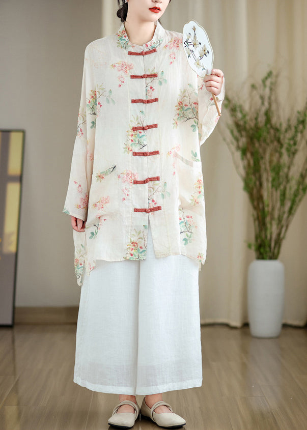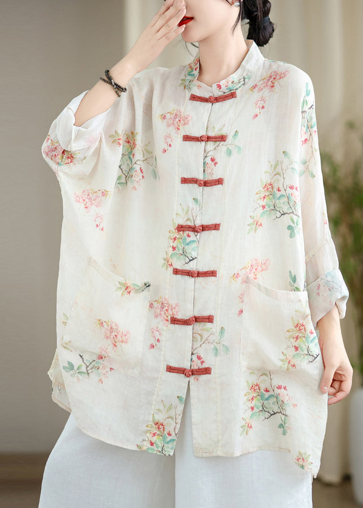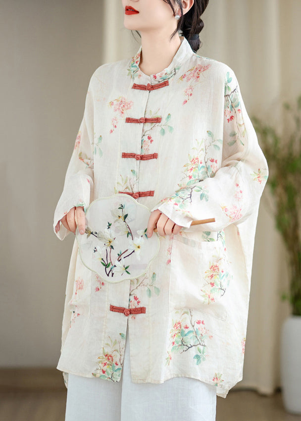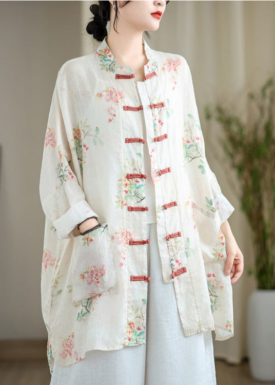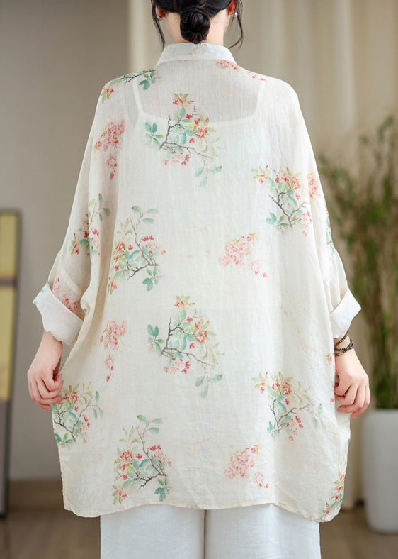 Fine White Oversized Print Linen Oriental Cardigan Spring Fabric: Cotton 45%, Linen 55% Size & Fit: Fit: This garment fits true to size. Length: Size 4XL measures 33.15"from shoulder to hem Bust: Great for any cup size. Waist: Loose Fit. Comfortable room throughout midsection. Hip: Loose Fit - room for hips. Hand Wash Cold.