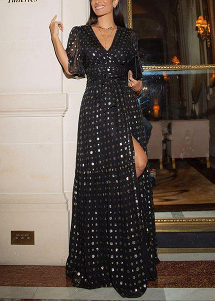 French Black V Neck Exra Large Hem Chiffon Party Dresses Summer