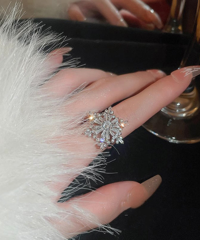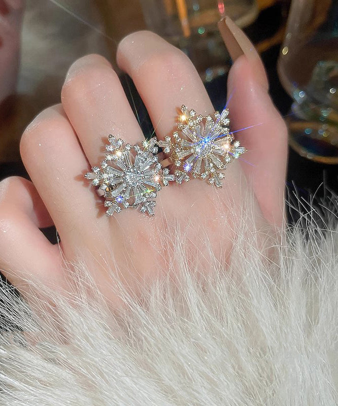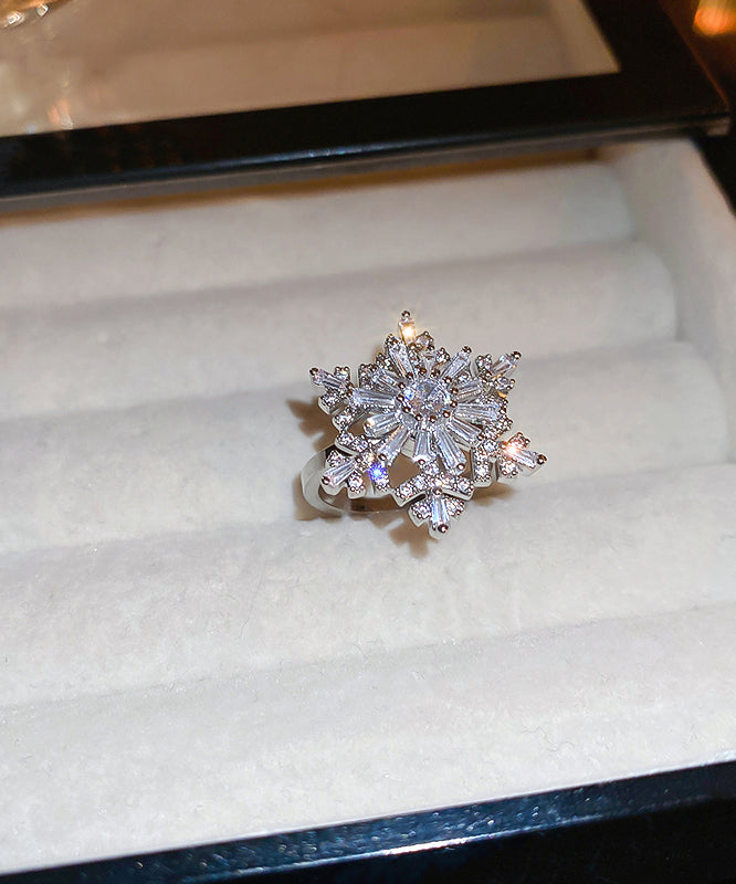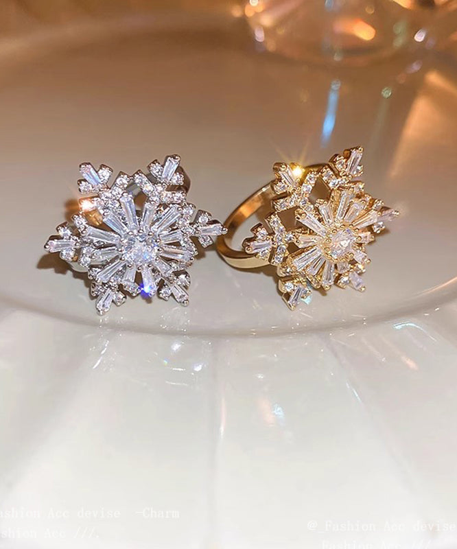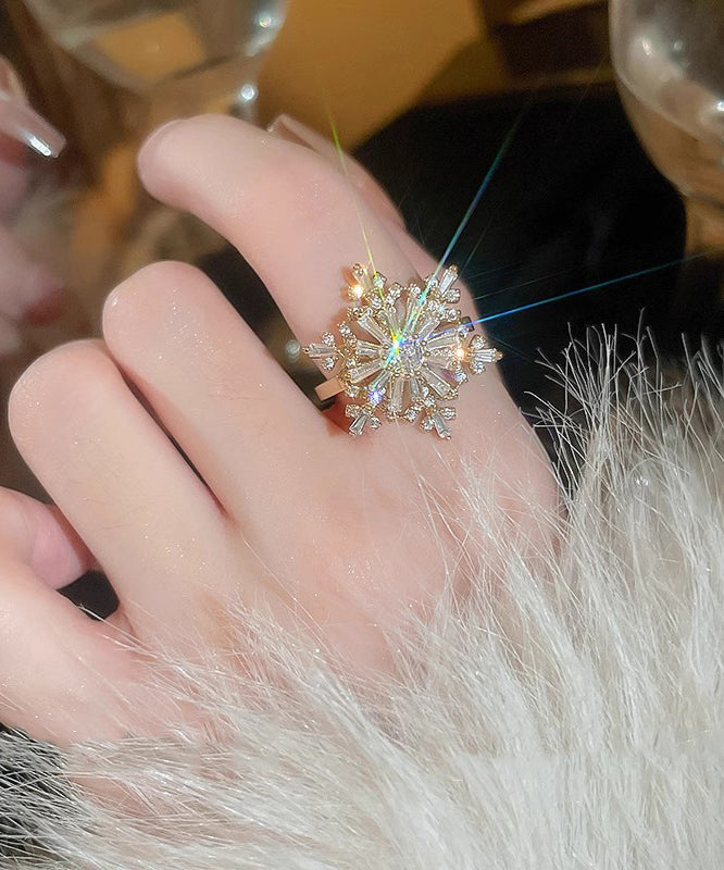 Original Design Silk Copper Zircon Snowflake Rotating Rings