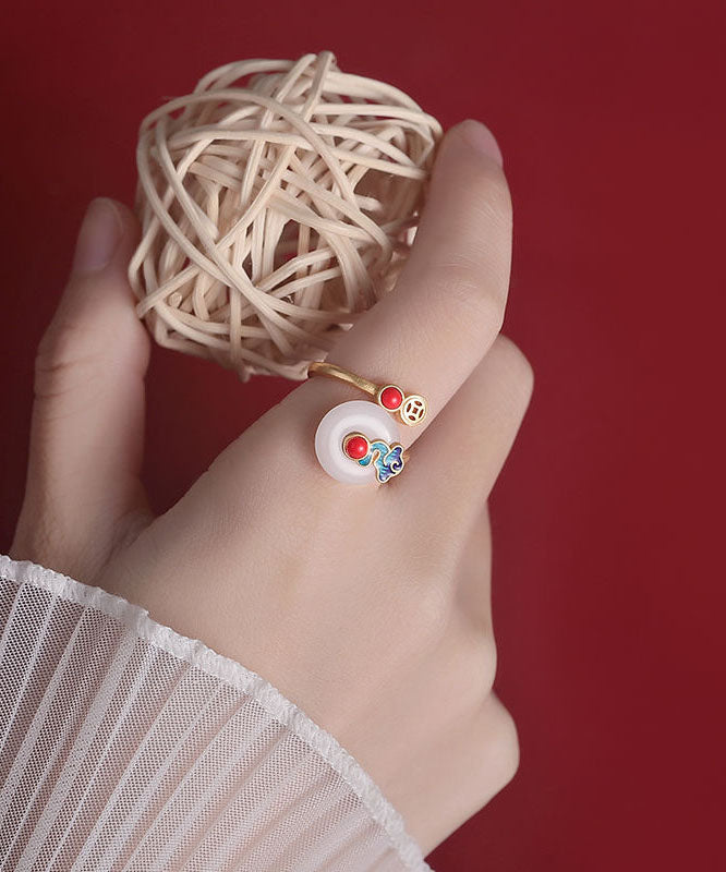 Retro Gold Sterling Silver Overgild Auspicious Clouds Agate Rings