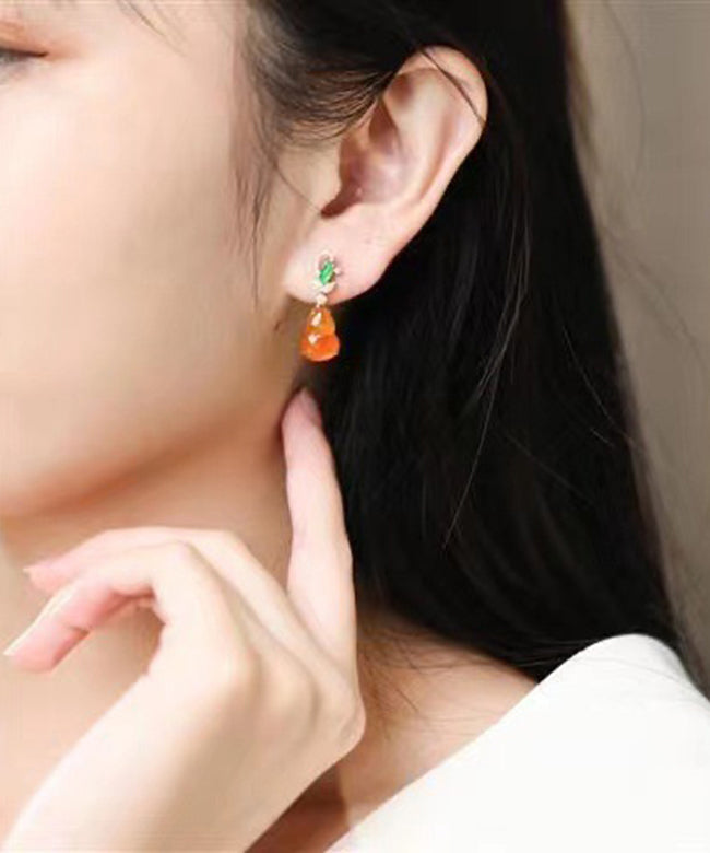 Retro Orange Sterling Silver Overgild Chalcedony Gourd Drop Earrings