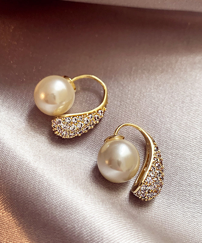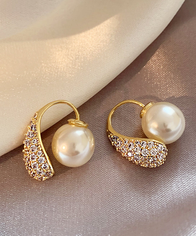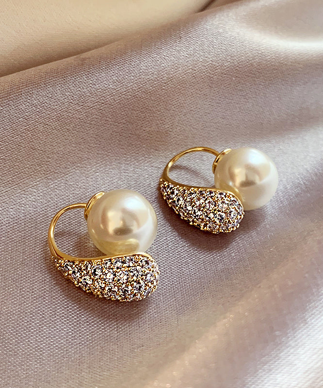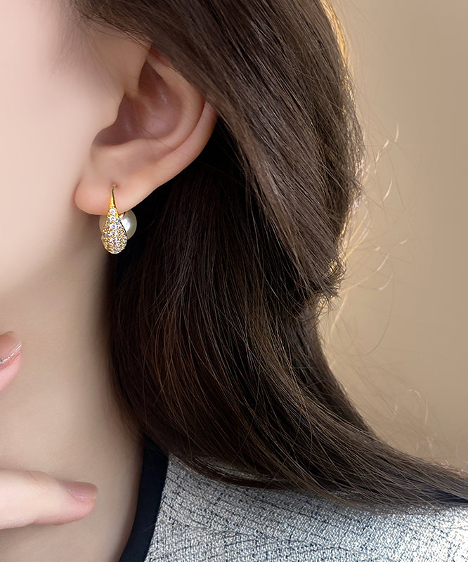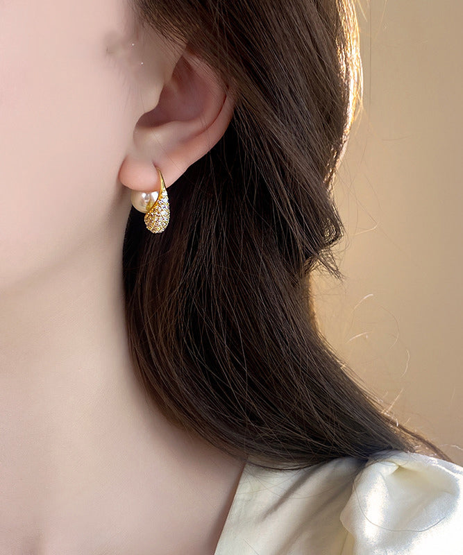 Style Gold Copper Alloy Zircon Pearl Hoop Earrings