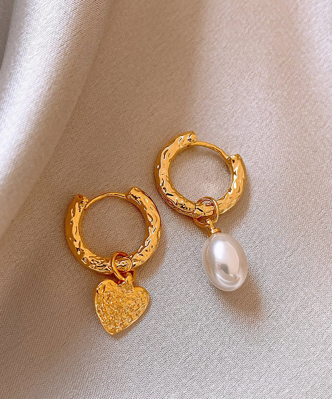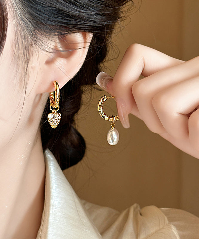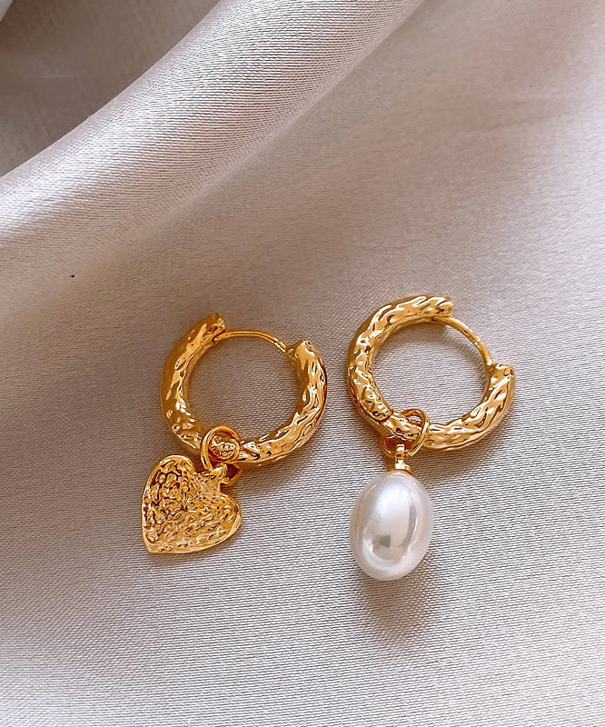 Unique Gold Copper Alloy Asymmetric Love Pearl Hoop Earrings